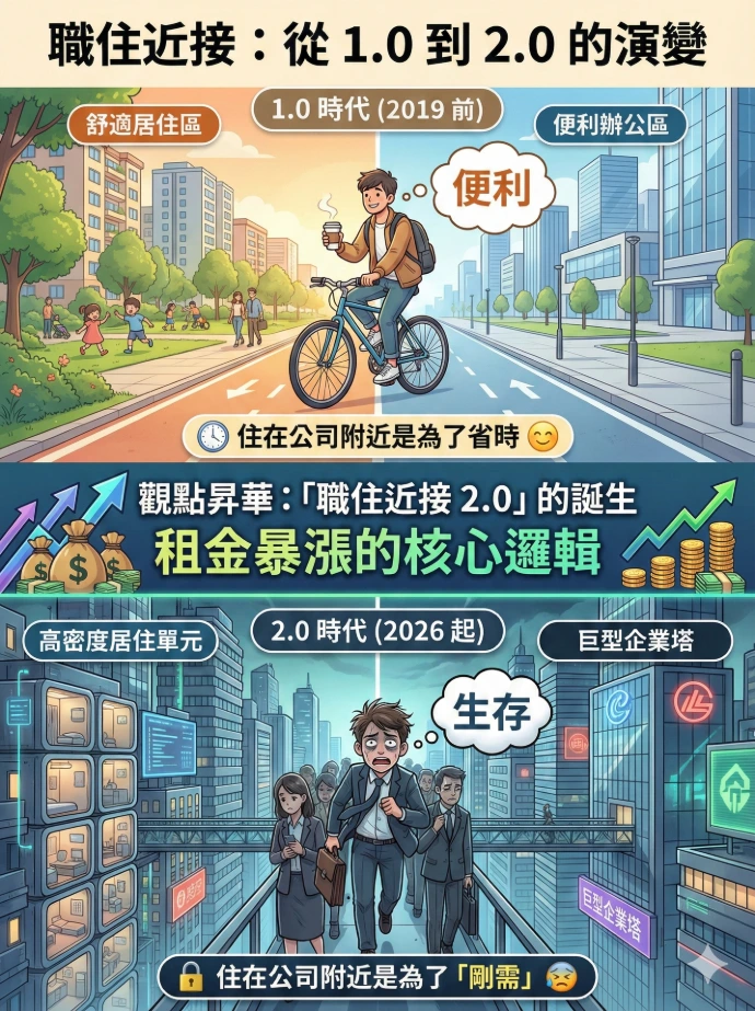 2.0 時代(2026 起): 住在公司附近是為了「生存」,是一種「剛需」
