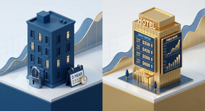不同於住宅或商辦通常簽訂 2 年或更長的固定租約,酒店的租約是「以日為單位」。