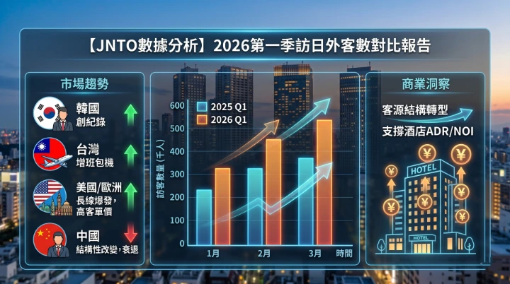 #JNTO觀光數據 #訪日外客數 #2026第一季 #入境遊客紅利 #InboundDividends #客源結構轉型 #歐美長線客 #客房單價ADR #AverageDailyRate #淨營運利潤NOI #NetOperatingIncome #日本酒店投資 #抗通膨資產