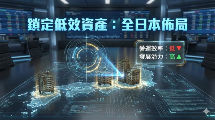 • 鎖定低效資產: 目標並非購買全新的五星級飯店,而是收購日本各地(不限於東京,涵蓋主要旅遊熱點)運營效率低下或硬體老舊的現有酒店。