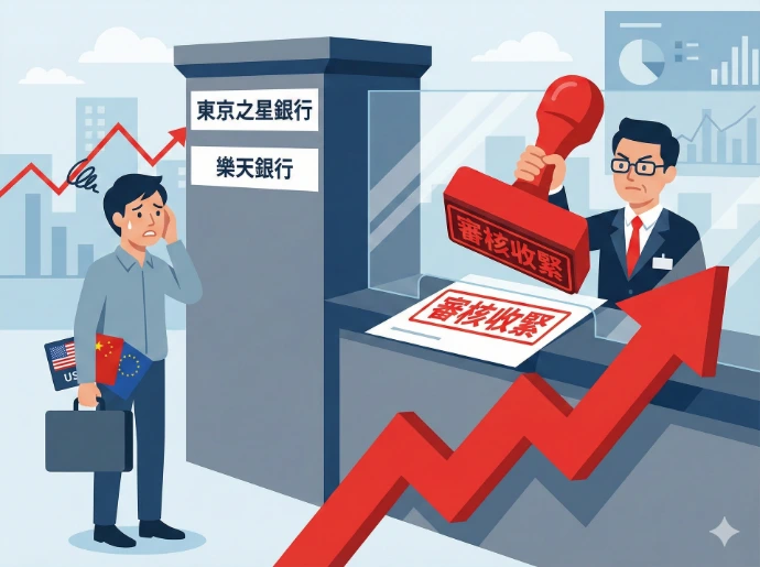 像是大家熟悉的東京之星、樂天銀行,最近對外國人的貸款審核都變嚴格了,利率也可能不再像以前那麼甜了。